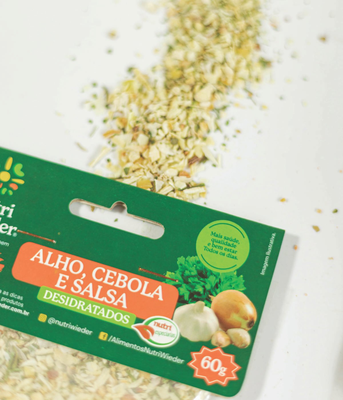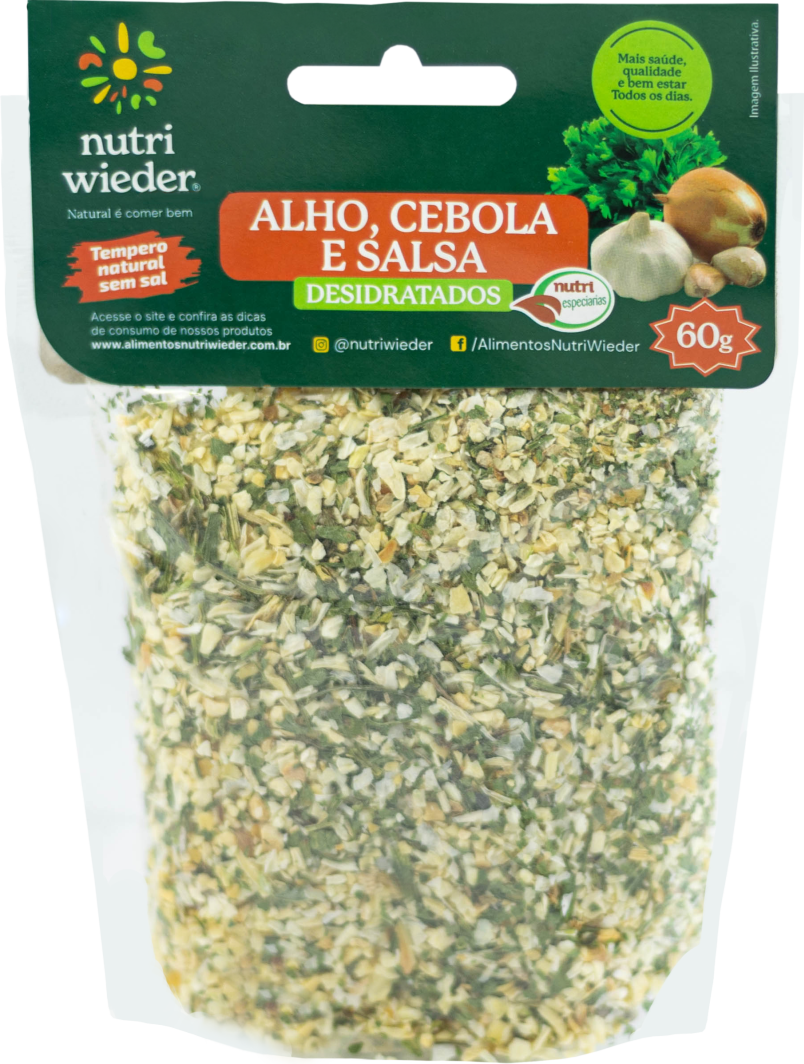 Alho, Cebola e Salsa Nutri Wieder é a combinação perfeita para sua culinária. Ricos em antioxidantes, ajudam a reduzir o nível de colesterol ruim e ainda fortalecem o sistema imunológico.