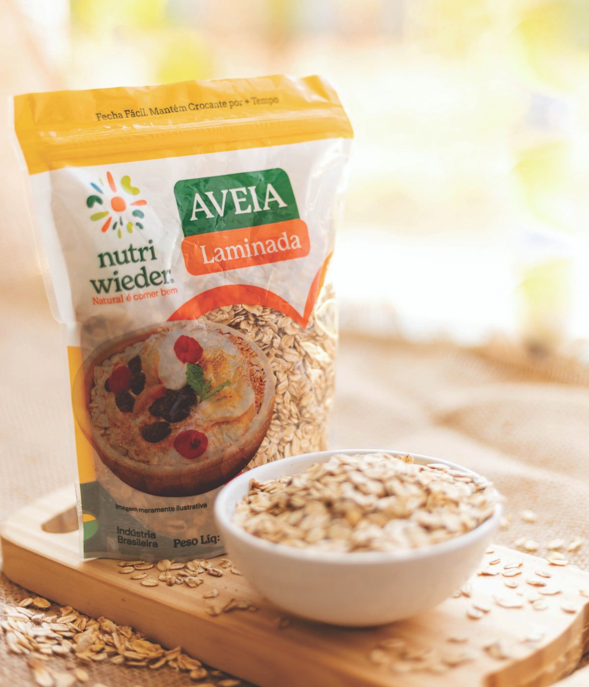 A aveia laminada é um cereal rico em fibras solúveis, vitaminas antioxidantes, minerais e lipídios, uma ótima opção para lanches.