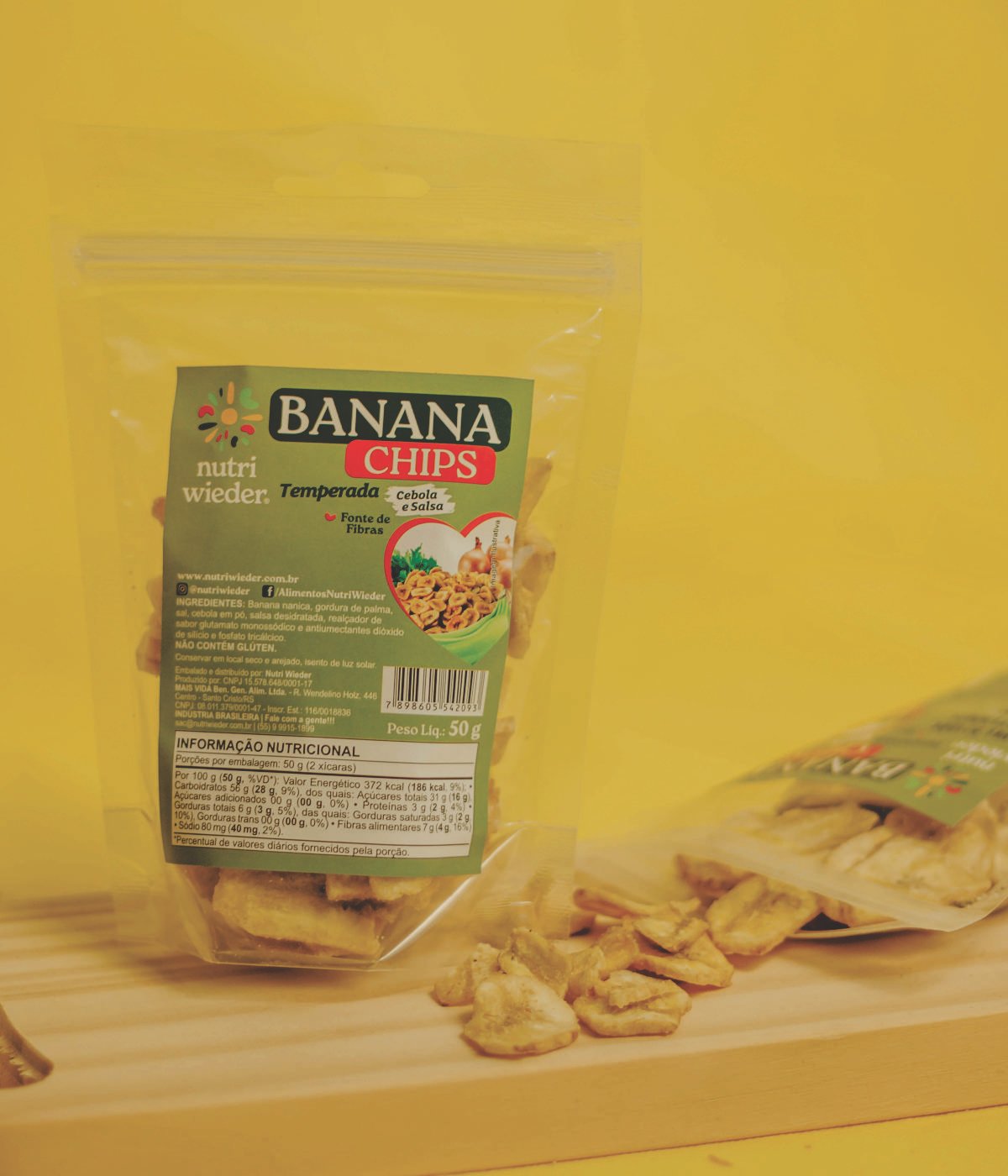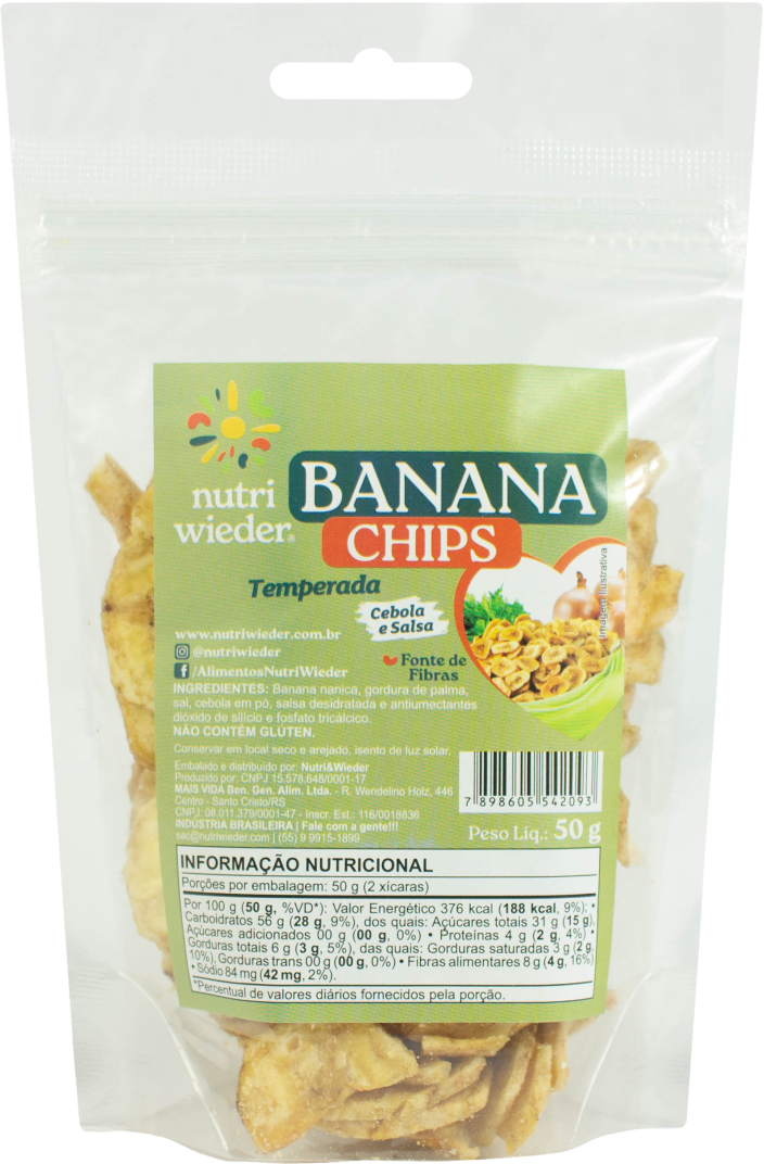 Ingredientes: Banana nanica, gordura de palma, sal, cebola em pó, salsa desidratada e antiumectantes dióxido de silício e fosfato tricálcico.