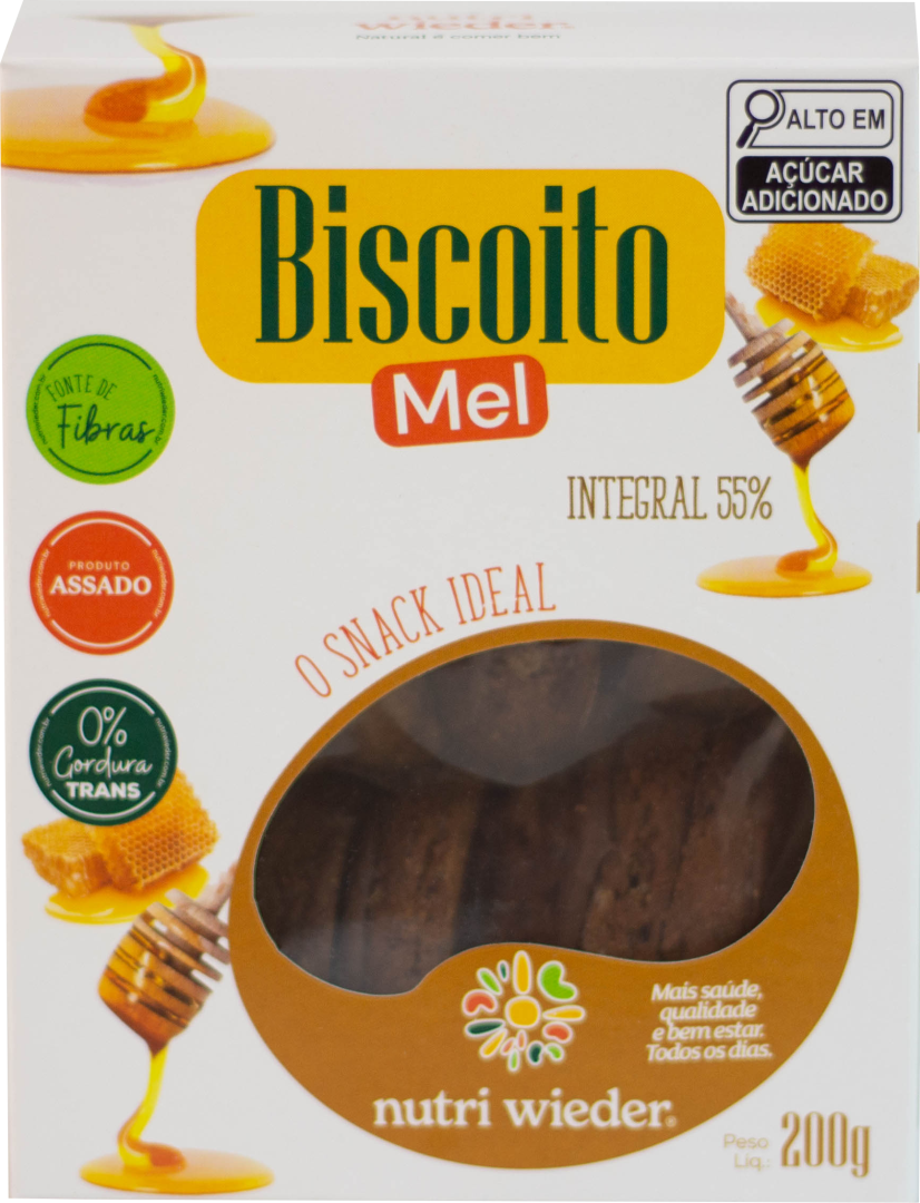 O Biscoito Integral sabor Mel da Nutri Wieder é o snack ideal para o seu dia a dia. Gostoso e crocante, é um produto assado, fonte de fibras e 0% gordura trans.