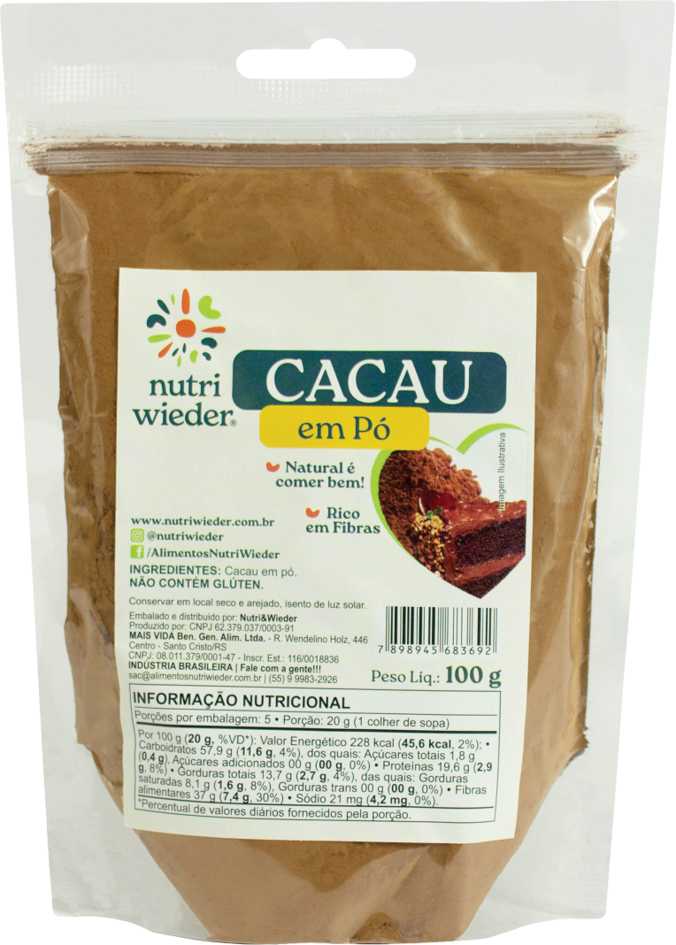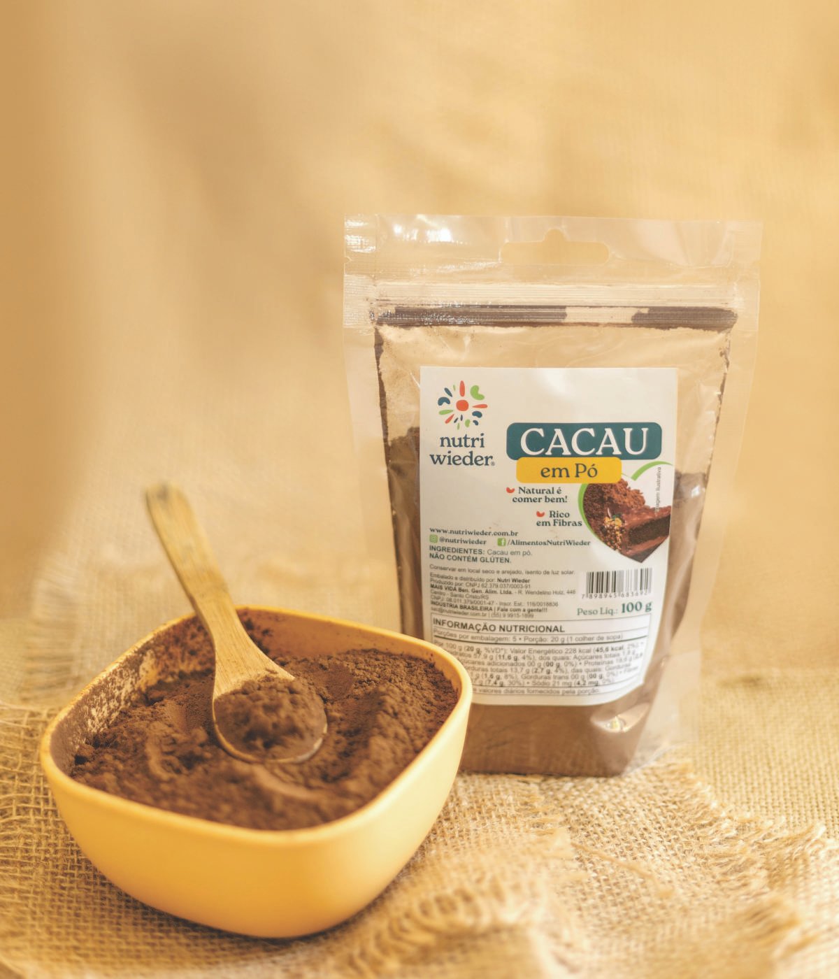 O cacau em pó Nutri Wieder é rico em flavonóides , um subconjunto de polifenóis, esses polifenóis agem como neutralizante dos radicais livres, inclusive na pele, impedindo o envelhecimento precoce, inclusive por exposição ao Sol.