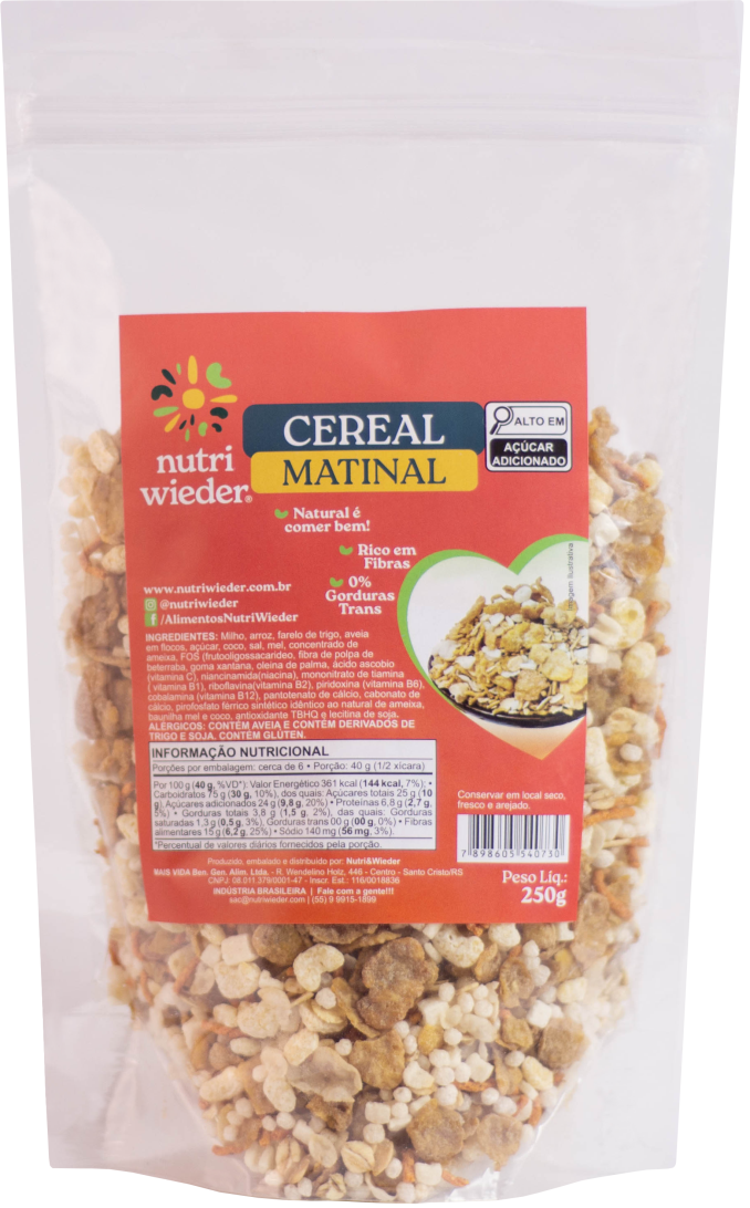 Rico em fibras, 0% gorduras trans. Ideal para ser consumido com leite, iogurte, frutas, açaí ou puro.