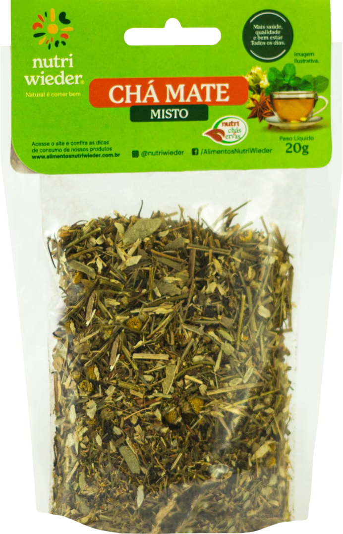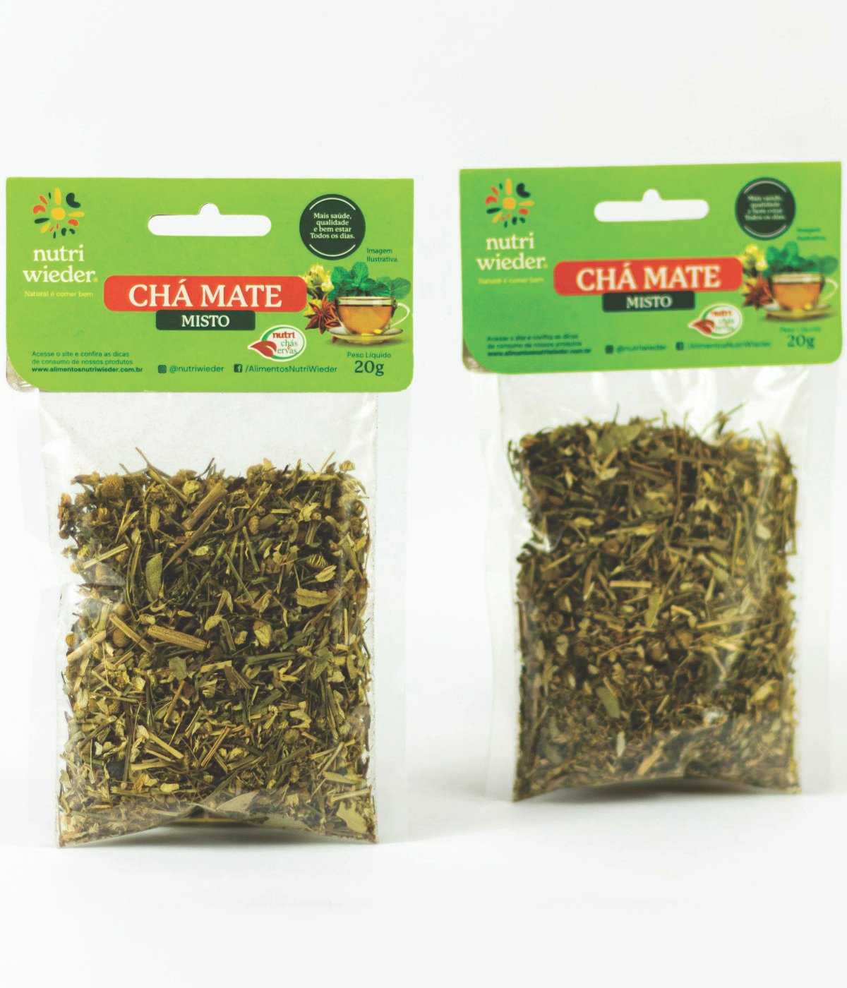 O chá mate Nutri Wieder é uma bebida versátil, composta por boldo, camomila, carqueja, menta, capim limão, anis e chá preto pode ser consumida pura ou adicionada ao seu chimarrão. Essa combinação ajuda no fortalecimento imunológico e melhora o humor.