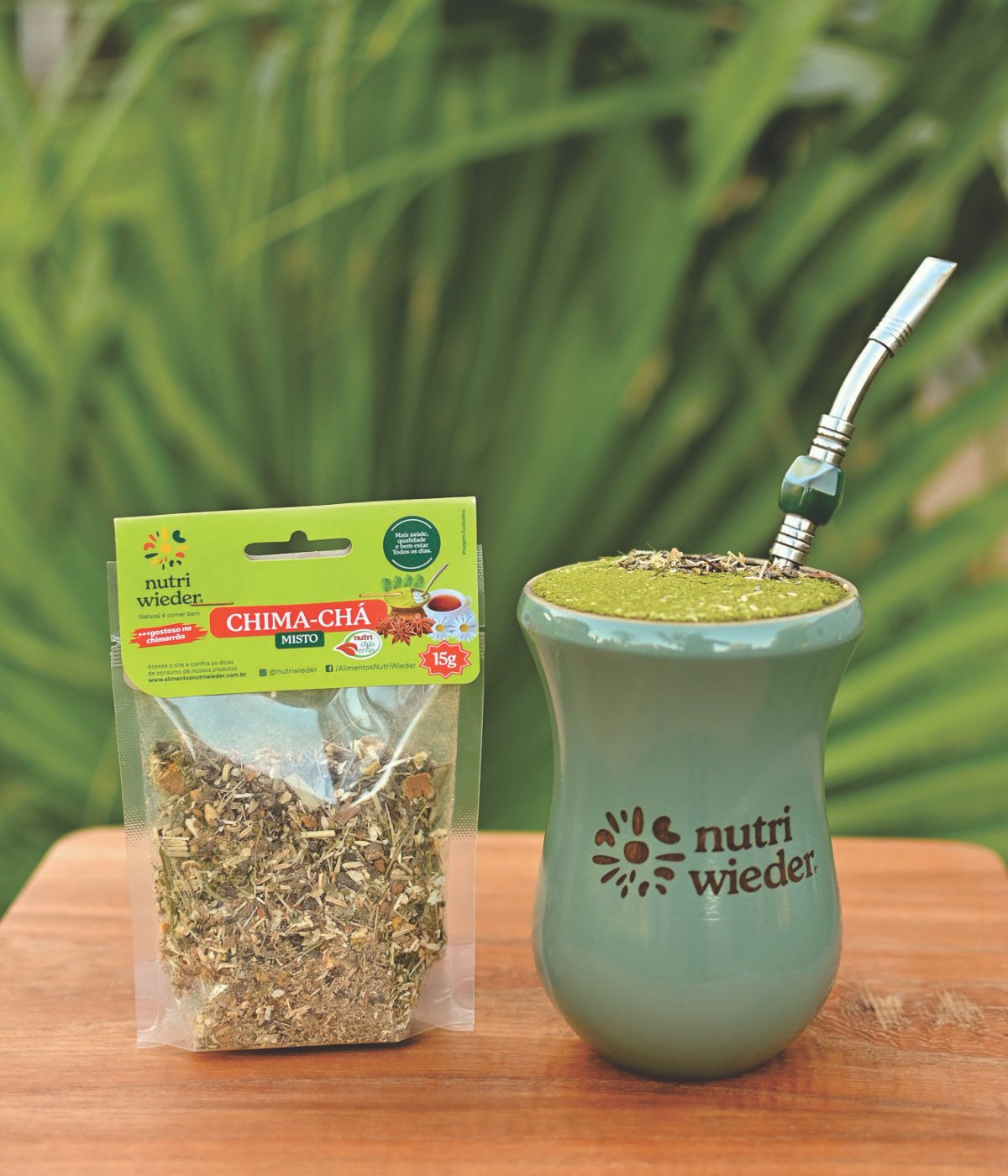 O Chima-chá Nutri Wieder composto por camomila, anis estrelado, feno grego, amora, funcho, casca de laranja, capim limão e hortelã, ajuda no melhoramento do humor, fortalecimento do sistema imunológico, redução de estresse e ajuda no aumento da hidratação. Esse chá pode ser consumido puro ou em seu chimarrão.