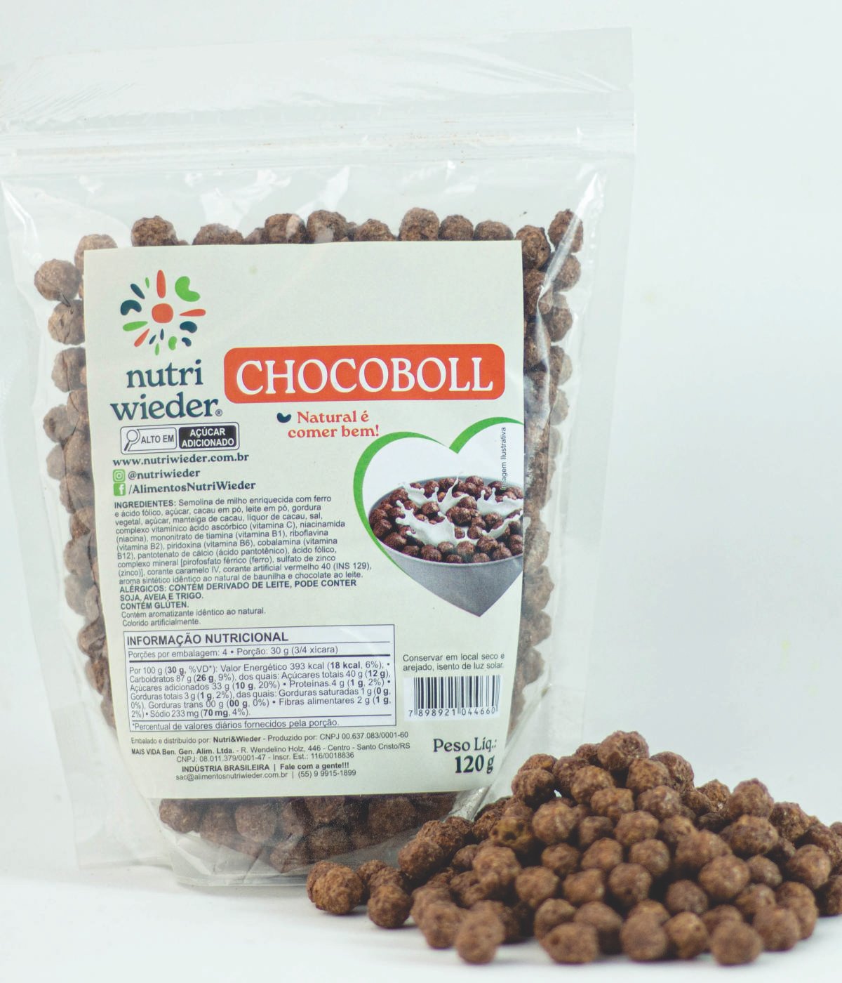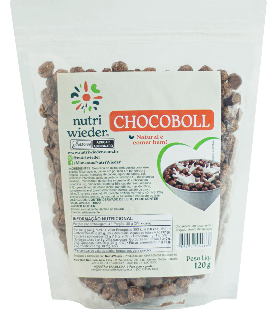 O Chocoboll é um cereal com sabor de chocolate, rico em vitaminas, minerais e fibras que proporciona mais saúde, energia, alegria e bem-estar para você.