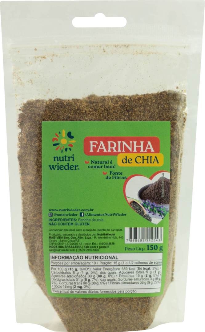 A Farinha de Chia é rica em fibras, cálcio, fósforo, magnésio, ômega 3, potássio e vitamina B. Sua alta concentração de fibras ajuda a melhorar o funcionamento do intestino, além de fazer com que o organismo absorva menos gordura e açúcar.