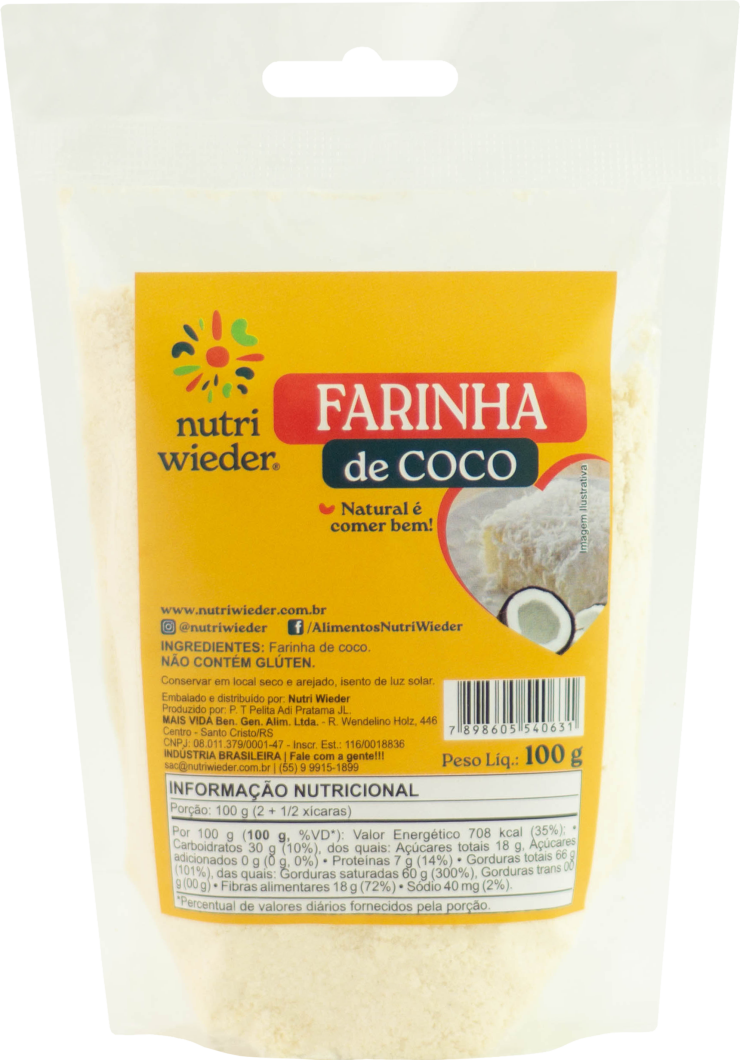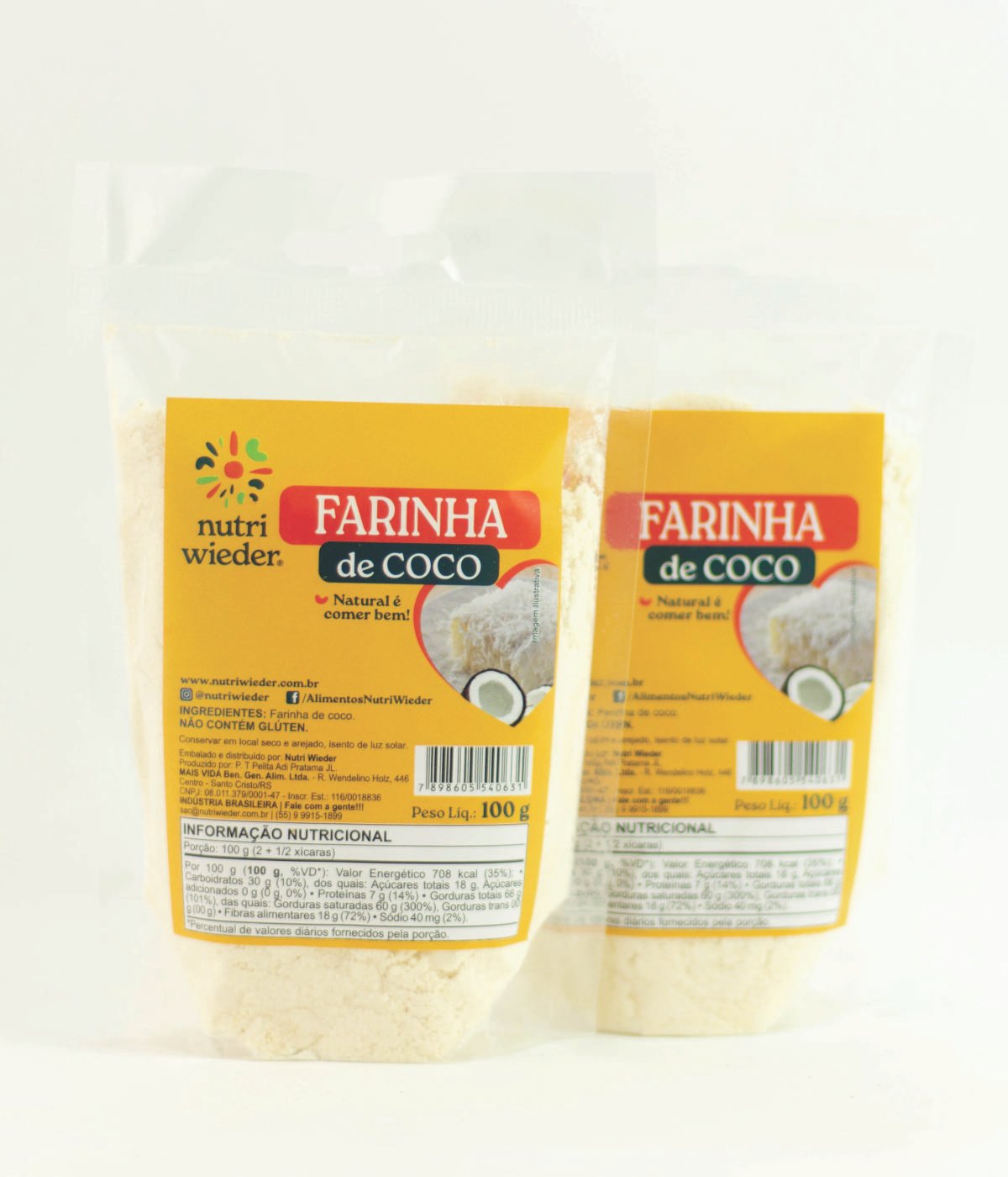 A Farinha de Coco é rica em fibras e antioxidantes, nutritiva, fonte de proteína e auxilia na saúde do coração. Promove a melhora do funcionamento do intestino, diminui os níveis de colesterol e acelera o metabolismo, aumentando a queima de gordura.