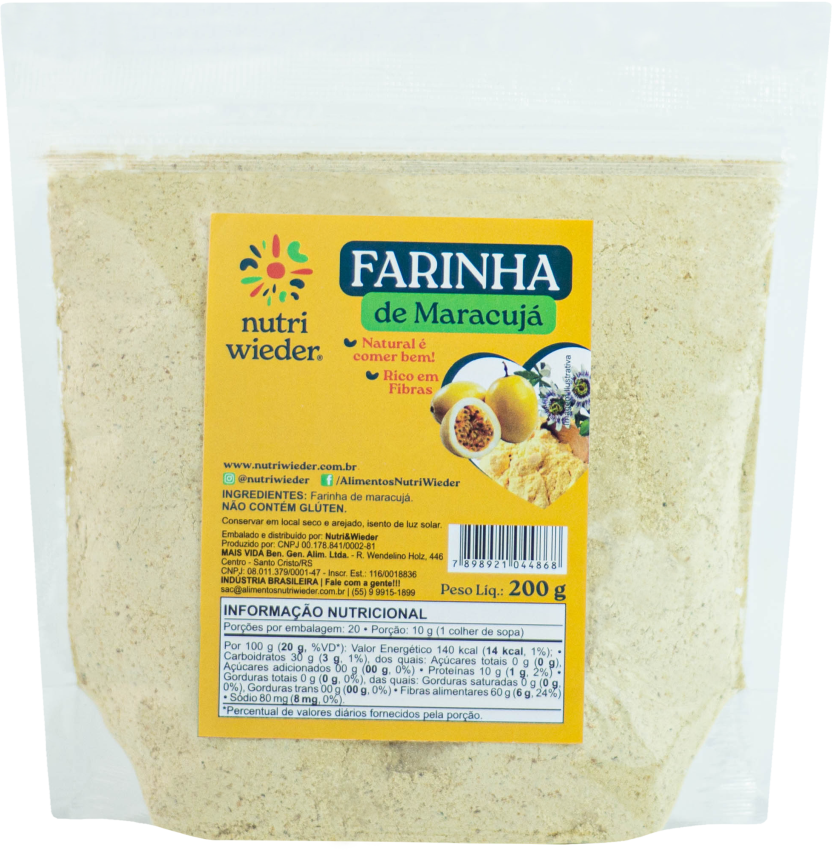 A Farinha de Maracujá é rica em fibras, vitaminas e minerais, considerada uma ótima aliada no processo de emagrecimento. Devido às suas propriedades, ajuda a regular os níveis de colesterol e glicose, além de garantir a sensação de saciedade.