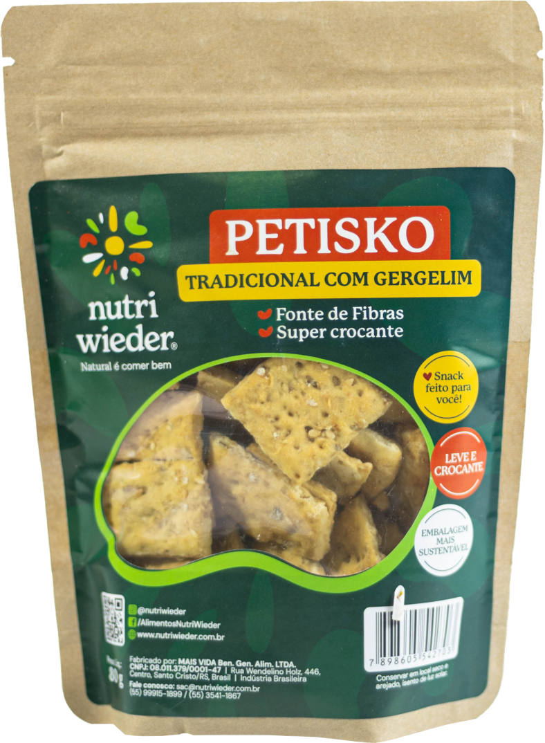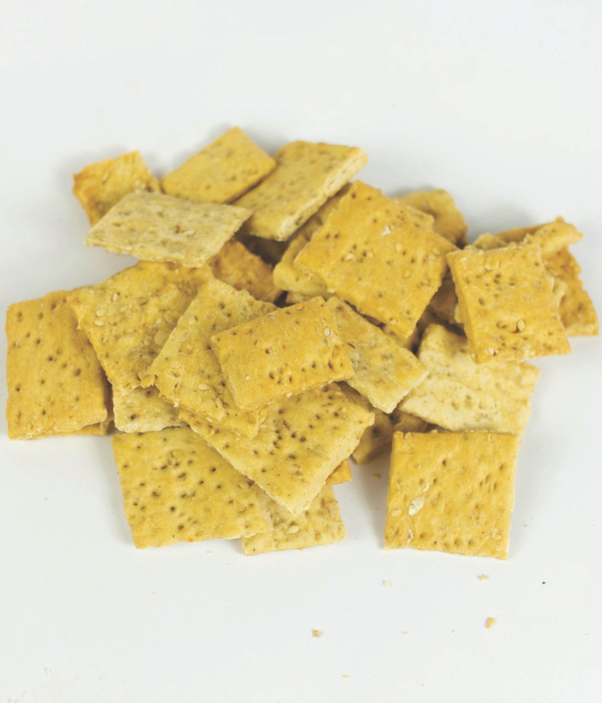 Leve e crocante! Ingredientes: Farinha de trigo integral, aveia em flocos, gordura vegetal, fermento, bicarbonato de sódio, malte para cereais, sal rosa do himalaia, sementes de gergelim. ALÉRGICOS: CONTÉM TRIGO E AVEIA. CONTÉM GLÚTEN.
