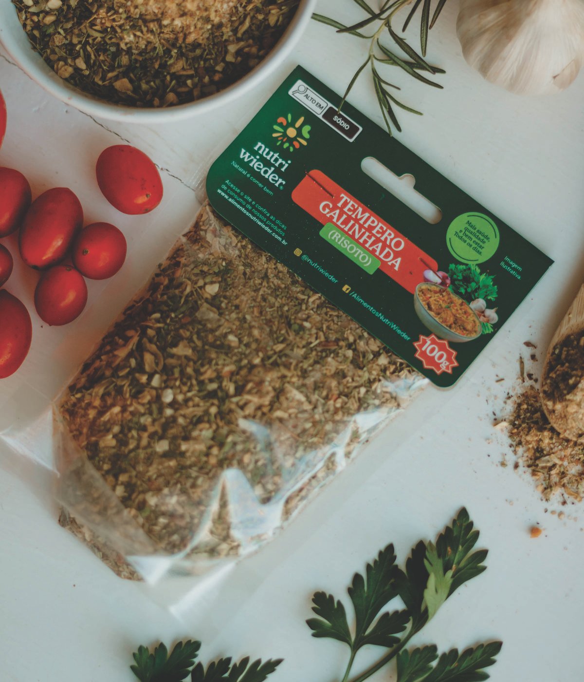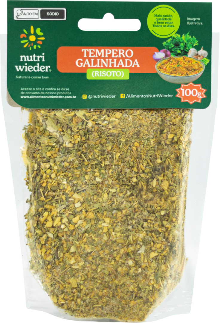 O tempero para galinhada da Nutri Wieder é uma combinação que realça o sabor da carne, adiciona complexidade e um toque picante, enriquece o prato com sabores terrosos e notas herbais, resultando em uma galinhada incrivelmente saborosa.