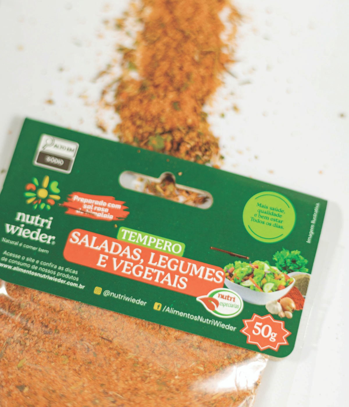 Transforme suas saladas, vegetais frescos e legumes com o Tempero Saladas, Legumes e Vegetais Nutri Wieder. Ideal para finalizar verduras cozidas ou grelhadas de maneira prática e deliciosa!